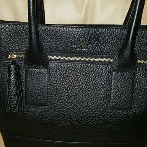 Authentic Kate Spade New York Black leather tote. Brand new never used tote. Could wear it on the shoulder or carry it on your arm. Very Sharp beautiful bag! Soft leather.