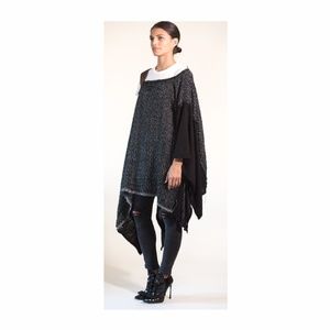 This is such a fun and unique piece. Black wool with silver threading and a brown suede shoulder strap. No one has anything like this so you'll definitely stand out.