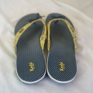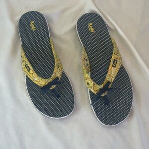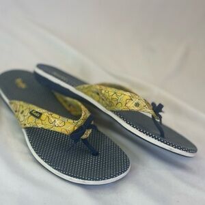 SOLD Keds Women Shoes Yellow Blue 9.5M Canvas Floral Polka Dot Flip Flop