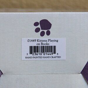 Adorable retired resin figurine "Kittens Playing on Books" hand painted and hand crafted by Country Artists. Figurine # 01449.