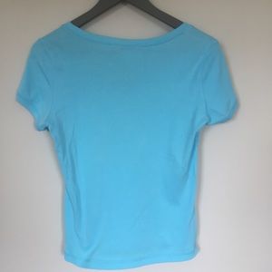 LILLY PULITZER Blue V Neck Tee Logo Palm Size Small