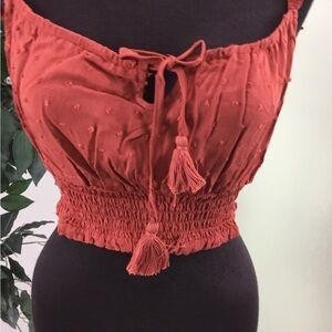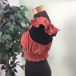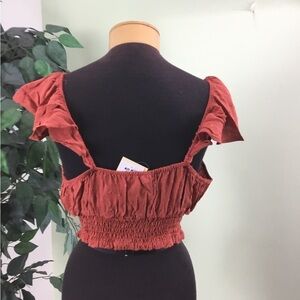 SOLD LIVE To Be Spoiled XL rust flutter sleeve smocked crop top