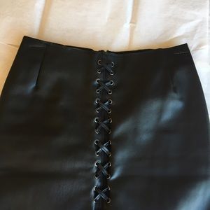 Lace up front with zipper back closure. Soft faux leather with small hanger indents on both sides. Slit up middle of skirt. New never worn without tags. Sold on Ⓜ️