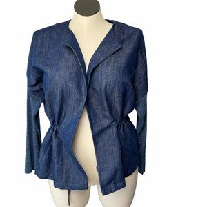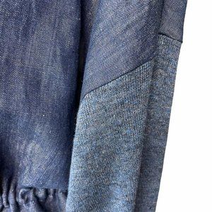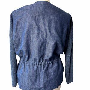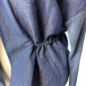 Lafayette 148 New York Jacqueline Linen Combo Topper, L. Crew neck. - Long knit sleeves - Open front - Side drawstring tunnels - 2 front pockets. Amazing preowned condition. No flaws. Looks new without tags. Sleeves: 61% cotton, 39% linen Combo: 100% linen 26" - P2P, 26" Length