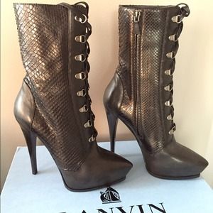 SOLD! Lanvin Python & Leather Lace Up Booties 39.5