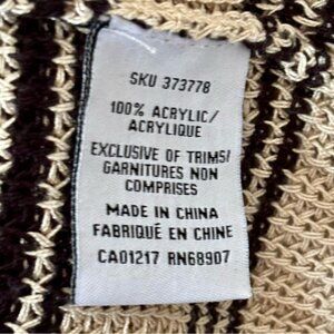 This elegant sweater from Le Chateau showcases a sophisticated cream and black color palette with a classic crew neck design. The medium-weight knit offers comfort and versatility, making it perfect for layering or wearing alone. Size large.