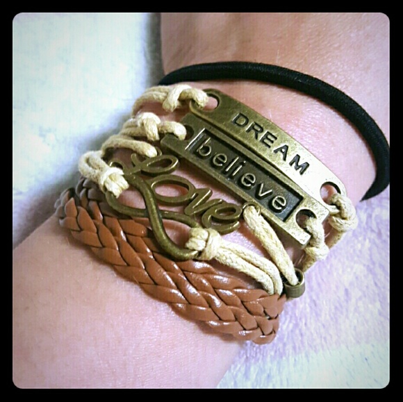 NWOT Leather Infinite Bracelet Love Believe Dream