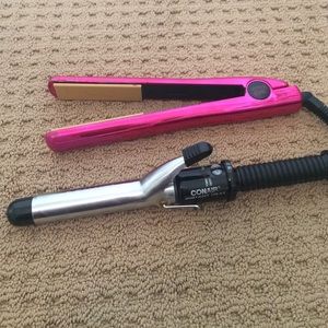 Limited edition pink chi flat iron! Metallic is chipping off but has no effect on the mechanics. //con air curler! In like new condition *** BOTH ARE SOLD