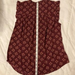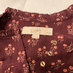 Loft blouse with floral pattern and ruffle trim on the sleeves