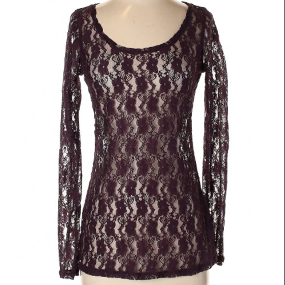 SOLD Longsleeve Sheer Lace Shirt, Eggplant/Plum
