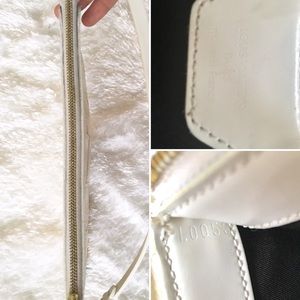 Authentic LIMITED Louis Vuitton Delmonico Pochette in White Epi. Delmonico bag in epi stretch leather and is black alcantara lined. Preowned excellent condition. Small tear near zipper. Very clean interior. Perfect for a night out and parties. It is sleek and compact, but also can store all of your essential carry items. Please review pics carefully. Not available for bundles.💗 NO TRADES. PRICE FIRM.