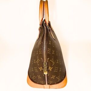 Louis Vuitton Alma PM in Monogram Canvas. This timeless and iconic bag is the perfect piece to elevate your everyday style. Crafted in signature monogram coated canvas with natural vachetta leather trim and gold-tone hardware, the structured silhouette adds an elegant and sophisticated touch to any look.