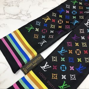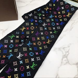 100% AUTHENTIC Louis Vuitton Murakami black multicolored bandeau twilly scarf Rare