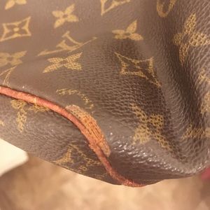 Vintage 100% authentic Louis Vuitton Speedy 30. Authenticated by mypoupette. Date code is VI8904. Zipper tab is broken but can be fixed at a Louis Vuitton store. I’ve been attaching a cute fluff key chain to the zipper. There are wear marks on all four corners of the bottom of the bag, snags inside the bag under piping and dark patina on all leather and handles. The canvas is still beautiful and has no rips, besides the wear on the bottom corners. It’s in great shape for being made in ‘89!