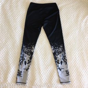 • Internal waistband pocket • Tight fit • Black and Gray/white color • ombré Floral print • great for workouts, yoga, or everyday lounge pant • waist 26" • inseam 27" • length 35.5" • 86% nylon • 14% spandex •