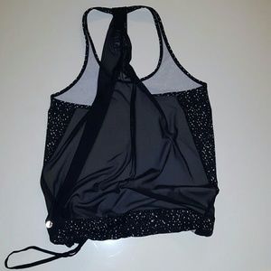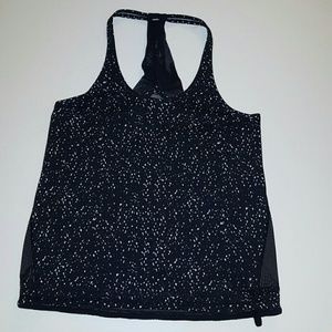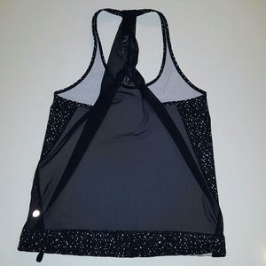 SOLD. Black and white splattered lululemon athletica tank with luxtreme front material and mesh back. Top has a side drawstring for optional tightening. Worn once, Size 6.