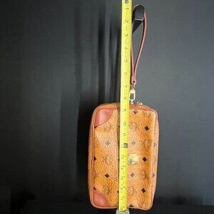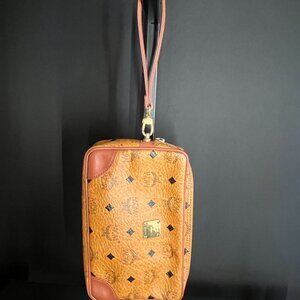SOLD MCM Monogram Vicetos Wristlet Clutch Bag Leather Brown Gold