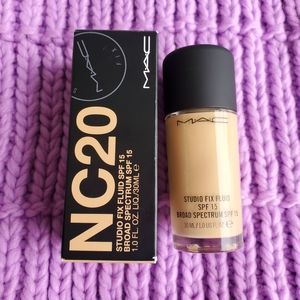 MAC Studio Fix Fluid SPF15 Foundation in shade NC20 ~ light beige with neutral golden undertone for light skin (neutral-cool)