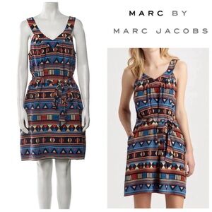 Black, navy and multicolor Marc by Marc Jacobs mini dress with scoop neck, velvet detailing throughout and elasticized waistband. The perfect piece for fall layering and/or concealing a bit of tummy. Size 6 US: bust is 32", waist is 30", hips 36", length 36". Excellent used condition with no rips, stains or tears.