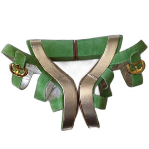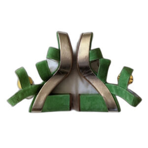 SOLD Marco Moreo Milano Lime Green Suede Gold Metallic Chunky Platform Sandals