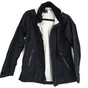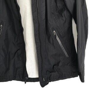 SOLD!! Marmot Small Membrain Black Hooded Jacket Zipper Pockets Damaged Lining