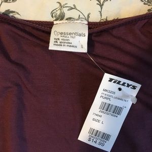 Never worn. Size says large but i dont know how they got that size. It fits like a true small. Not loose fitting. From tillys