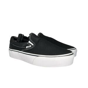 Step up your shoe game with these stylish and comfortable Vans Old Skool Slip-On Lift Canvas Sneakers! These sneakers feature a classic black and white design that will complement any outfit. They are a size 10 and are perfect for everyday wear. The platform lift adds a trendy touch, making these Vans a must-have for any sneaker enthusiast.