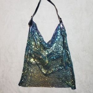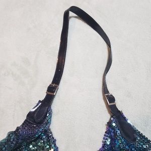 Multi color chain top with adjustable faux leather straps and black silk lining on the inside.