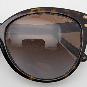 This listing is for Michael Kors MK2045 Jan 3006T5 Dark Tortoise Frame Polarized Brown Gradient Lens Cat Eye Sunglasses 55-16-140. Current lenses have heavy scratch damage and recommend replacement with lens of your choice. Sunglasses are in poor pre-owned condition, both lenses have heavy scratch damage (see photos). Size: 55-16-140. Made in China. Please see pictures to make your complete condition assessment.