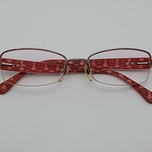 This listing is for authentic Michael Kors MK361 780 Rose Gold Crystal Red Semi Rimless Eyeglasses Frame w/ Case 51-17-135. Current lens are unknown Rx prescription and will need to be replaced with lens of your choice (FRAME ONLY). Eyeglasses frame is in good pre-owned condition, (see photos). Size: 51-17-135. Michael Kors white hard case included in listing. Please see pictures to make your complete condition assessment.