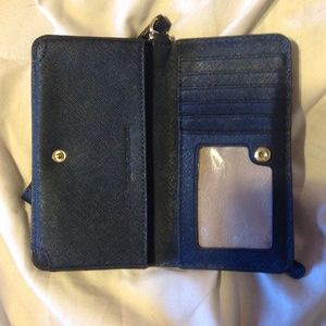 Authentic Michael Kors wallet. Has pockets on the sides and can fit an iPhone 4, & 5. I think it can fit a iPhone 6 also because I tried it with my friends phone and it still closed. It's in very good conditions. Will ONLY TRADE for another Michael Kors wallet or a Kate Spade wallet.