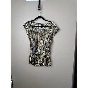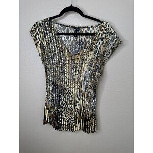 SOLD Milano Women's Cheetah Blouse size Large short sleeve fitted round neck