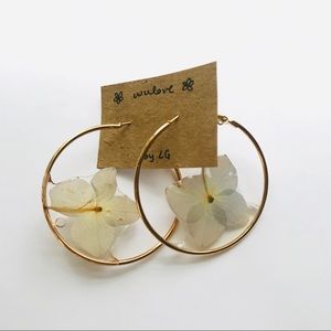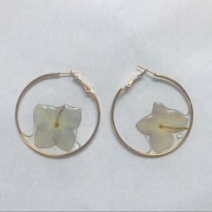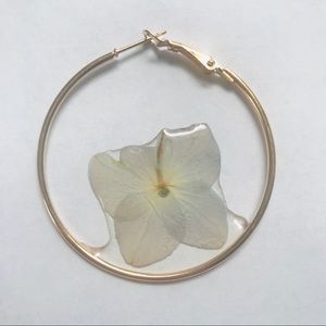 🩰Mini blue/purple hydrangeas preserved and coated in clear resin inside of clasp hoop earrings