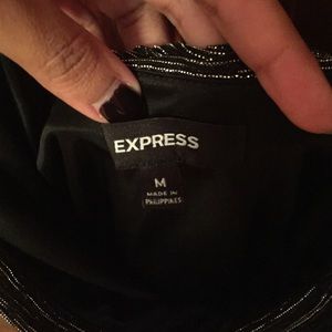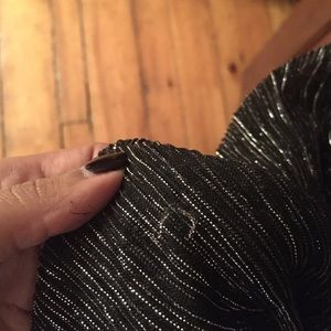 Form fitting with ruching on the side. Black and silver. There are some silver threads that have snagged. I snapped a pic to show.