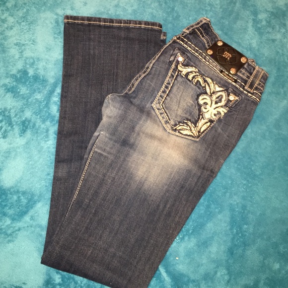 Miss Me Bootcut. Size 29. Small tear in the inside of left leg. Shown in picture. Easy fix. Just don't want to mess with it.