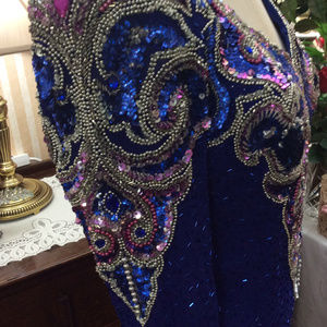 More Photos of Vintage Blue Silk Glitzy Sequin Evening Gown ...