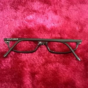 Tommy Hilfiger black glasses frames. Had my old prescription in them but I popped out the lenses. Frames are in good condition, strong, and stylish.