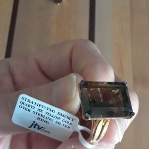 Size 8 is Smoky quartz with 18k gold over Sterling silver. Size 10's are smoky quartz with white zircon and a pink stone I'm not sure of Sterling silver and the other size 10 is 18k over Sterling silver with a 14 carat mystic topaz. All bought off jtv. All have tags.