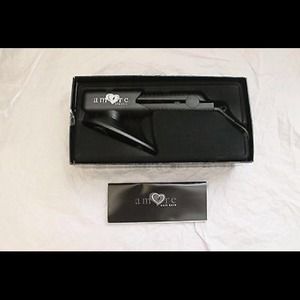 Description by Amore: classic ceramic straightener with solid ceramic plates guarantee fast and smooth straightening results without pulling/breaking hair. Hair is 3x smoother silkier than ordinary ceramic irons. High negative ions cuts straightening time in half, renew your hair's natural softness, shine and eliminates frizziness.
