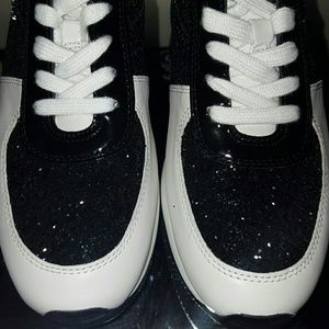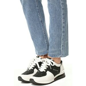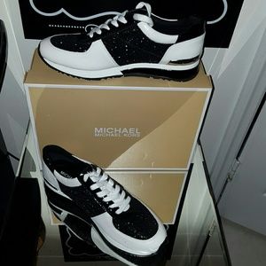 Brand new MK Allie Wrap Trainer Glitter Sneakers with original box, glittering rhinestones accent this contrast faux leather sneakers in a metallic weave. mirrored accent and a padded collar, lace up closure, foam sidewall, rubber sole, heel 1.25 in/30mm. No trades. 👠ALL REASONABLE OFFERS ACCEPTED👠