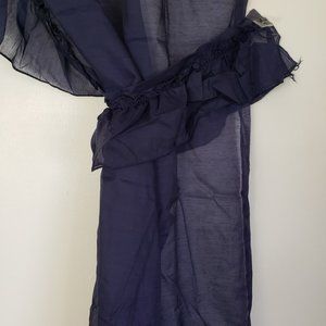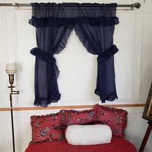 NEW Vintage Sears Priscilla Curtains Tie Backs Navy Ruffled Semi Sheer 60W x 54L