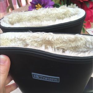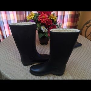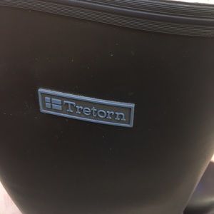 Black matte Tretorn "Libby" rain boots. I bought these on here a few weeks ago, thinking they were wide calf, but they're not so they don't fit. Nothing wrong with them, just a little dirt on them. Perfect for fall and rainy days.