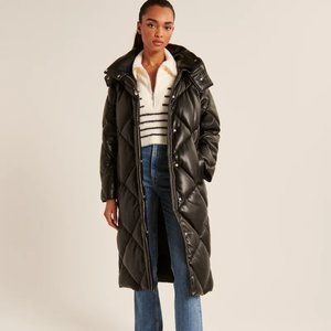 A&F Ultra Long Vegan Leather Quilted Puffer (currently Sold Out Online)