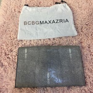 This is a NWT BCBG envelope clutch in faux sting ray pattern. It is just big enough to hold a full size wallet.