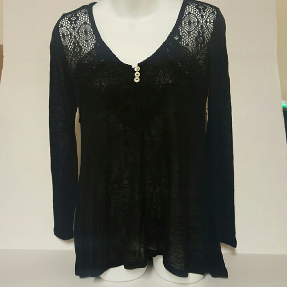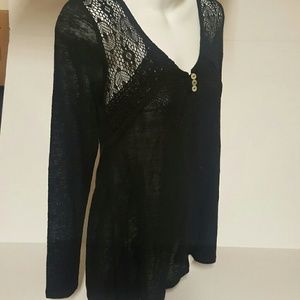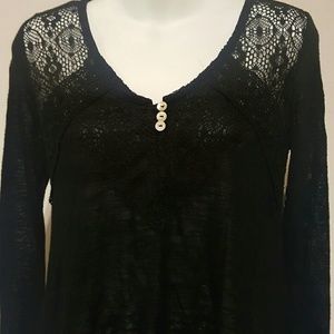 Adorable Black Long-sleeved Sheer & Lace High Low Shirt. New with tags. Meant to be a little oversized.