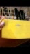 New with callout - or back of wallet there was a little spot that was wiped off and there’s a little bit of fading just a tad bit where it looks like it was cleaned up a bit from storage It is a lightweight leather with a delightfully pebbled texture, this slender design holds currency and credit cards on one side, a cell phone and additional personal items on the other. A detachable leather wrist strip allows for hands-free wear.