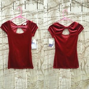 Adorable shortsleeved top with velvety finish. Featuring a back keyhole. Super adorable and perfect for date nights or just everyday cuteness!