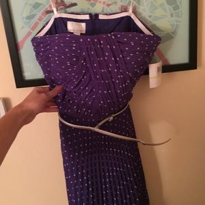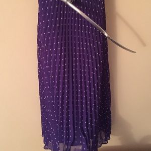 Sold out Linger a Little Longer dress from ModCloth in violet. A polka dot strapless dress with pleated skirt. Comes with belt.