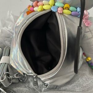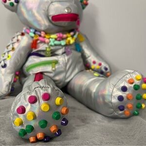 Brand NEW Silver and multi-coloured beaded teddy bear with buttons