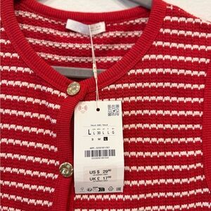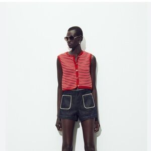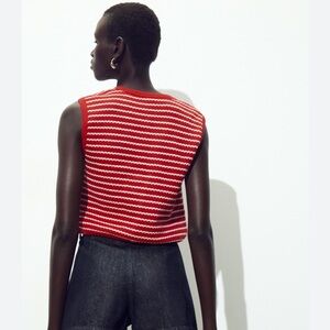 SOLD - NWT Zara Buttoned Jacquard Vest Top - White Red